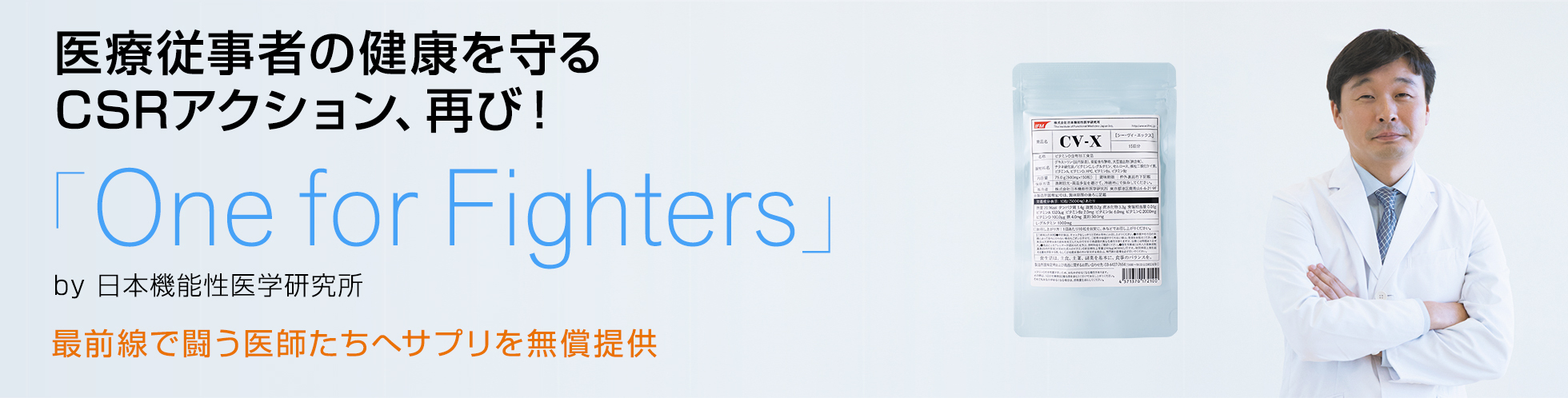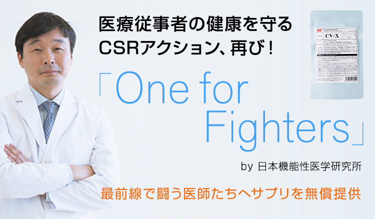 株式会社日本機能性医学研究所(東京都港区/代表取締役 斎藤糧三)は、2021年4月20日(火)より、ビタミンDなどを配合したサプリメントを無償提供することで、医療従事者の皆さまを応援するCSRアクション「One for Fighters」を再びスタートいたします。